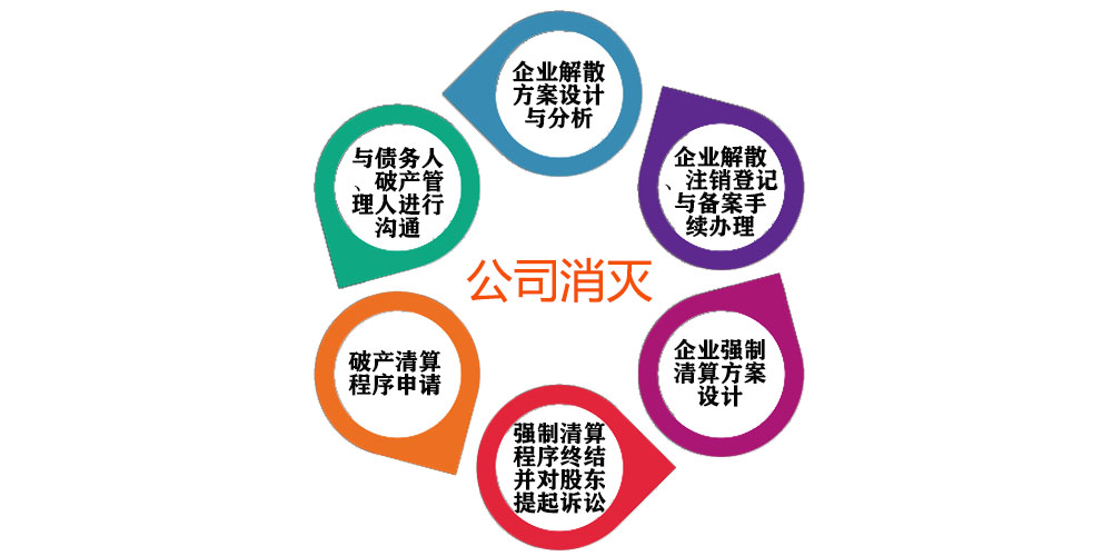 公司消滅涉及企業(yè)解散方案設(shè)計(jì)與分析,企業(yè)解散、注銷登記與備案手續(xù)辦理,企業(yè)解散清算,企業(yè)安置員工,與稅務(wù)、工商部門溝通;企業(yè)強(qiáng)制清算方案設(shè)計(jì),企業(yè)強(qiáng)制清算申請(qǐng),強(qiáng)制清算程序終結(jié)并對(duì)股東提起訴訟等;破產(chǎn)清算方案設(shè)計(jì),破產(chǎn)清算財(cái)產(chǎn)調(diào)查,破產(chǎn)清算程序申請(qǐng),債權(quán)登記,債權(quán)人會(huì)議,與債務(wù)人、破產(chǎn)管理人進(jìn)行溝通等。