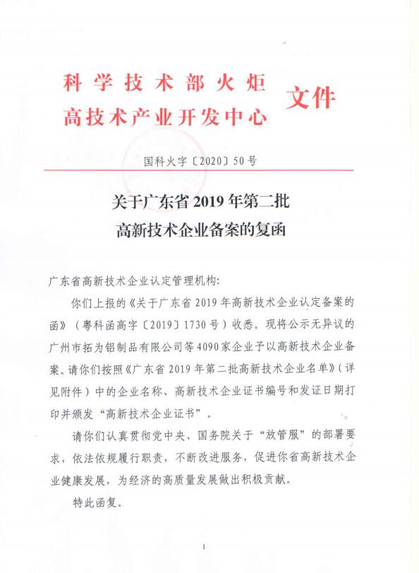 經(jīng)全國(guó)高新技術(shù)企業(yè)認(rèn)定管理工作領(lǐng)導(dǎo)小組辦公室備案批復(fù)同意,廣東省三批次合計(jì)10528家企業(yè)被認(rèn)定為廣東省2019年高新技術(shù)企業(yè),相較于擬公示名單共有183家企業(yè)未通過(guò)備案獲得高新技術(shù)企業(yè)證書(shū)編號(hào)!